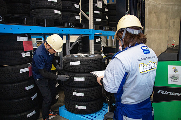 広々タイヤ専用倉庫で室内保管
